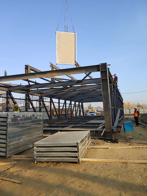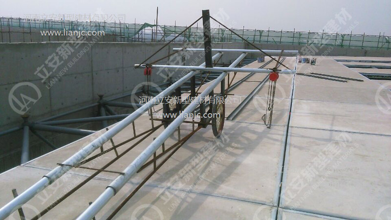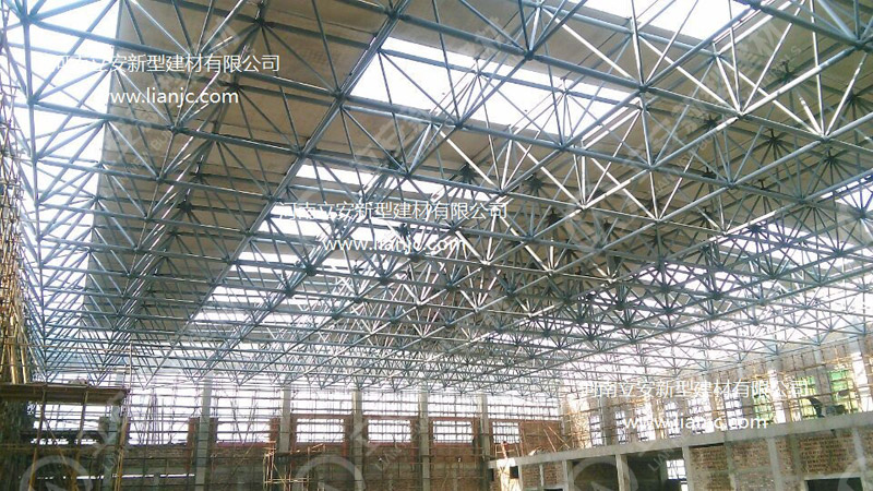 鋼骨架輕型板適用于輸煤棧橋、公共民用等建筑圍護屋面、樓面、墻面.鋼骨架輕型板由輕型鋼骨架、冷拔鋼絲網(wǎng)、改性水泥珍珠巖復合芯材(專有技術(shù))、復合抗?jié)B耐磨涂層(專有技術(shù))組成.鋼骨架輕型板集輕質(zhì)、承重、節(jié)能、防火、隔聲、泄爆、抗震等功能于一體,既保持了傳統(tǒng)鋼筋混凝土構(gòu)件安全度高、使用壽命長的優(yōu)點,又滿足了現(xiàn)代建筑對輕質(zhì)、節(jié)能、環(huán)保的要求。